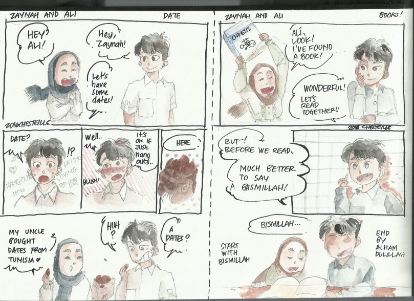 Ali and Zaynah Comic Strip May 10, 2016 2338 × 1700 Young Explorers’ Adventures in Makkah – Illustrations © @chesteille